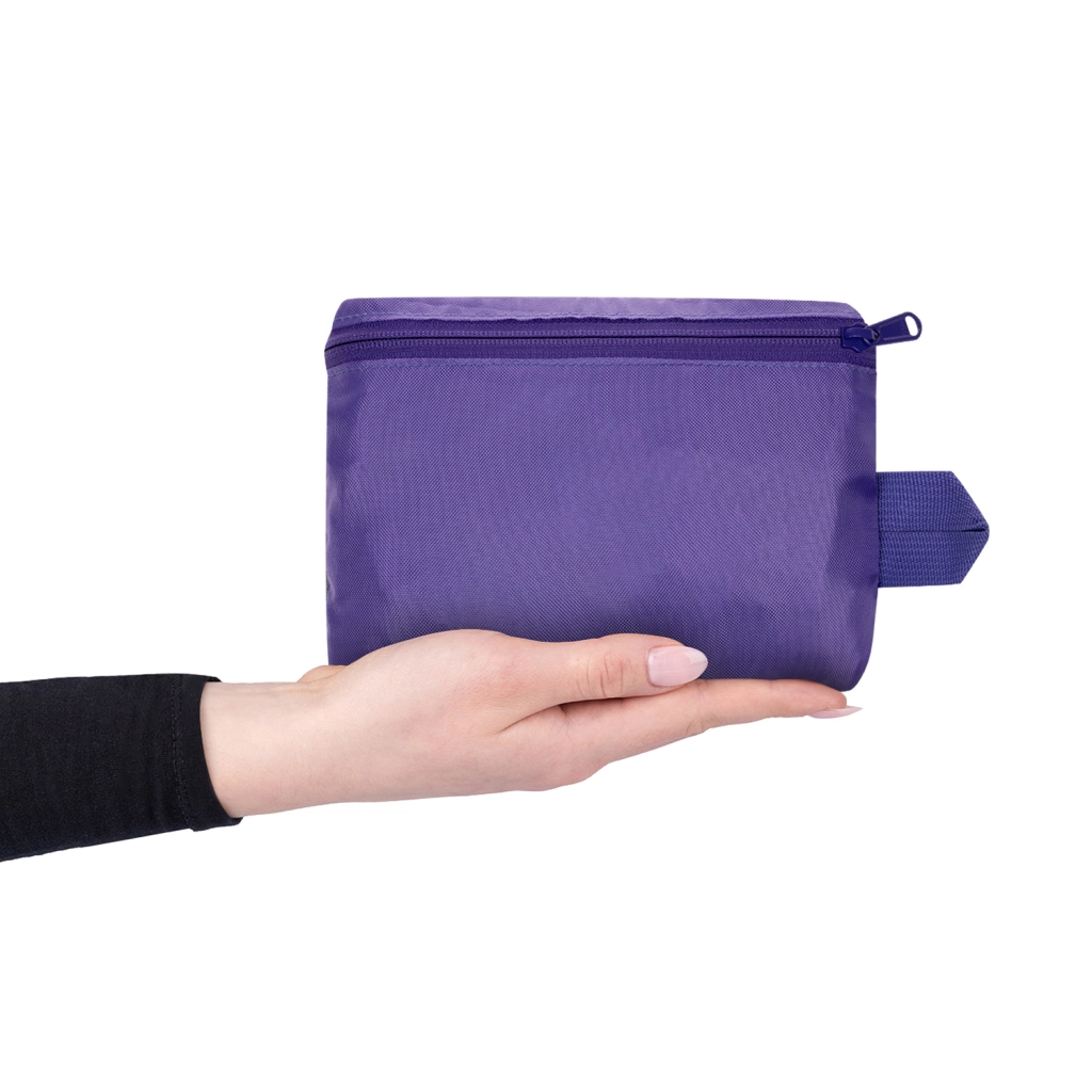 Un sac léger avec deux poignées et une bandoulière réglable supporte jusqu’à 5 kg. Il se plie facilement dans la poche intégrée et s’attache au sac à dos.