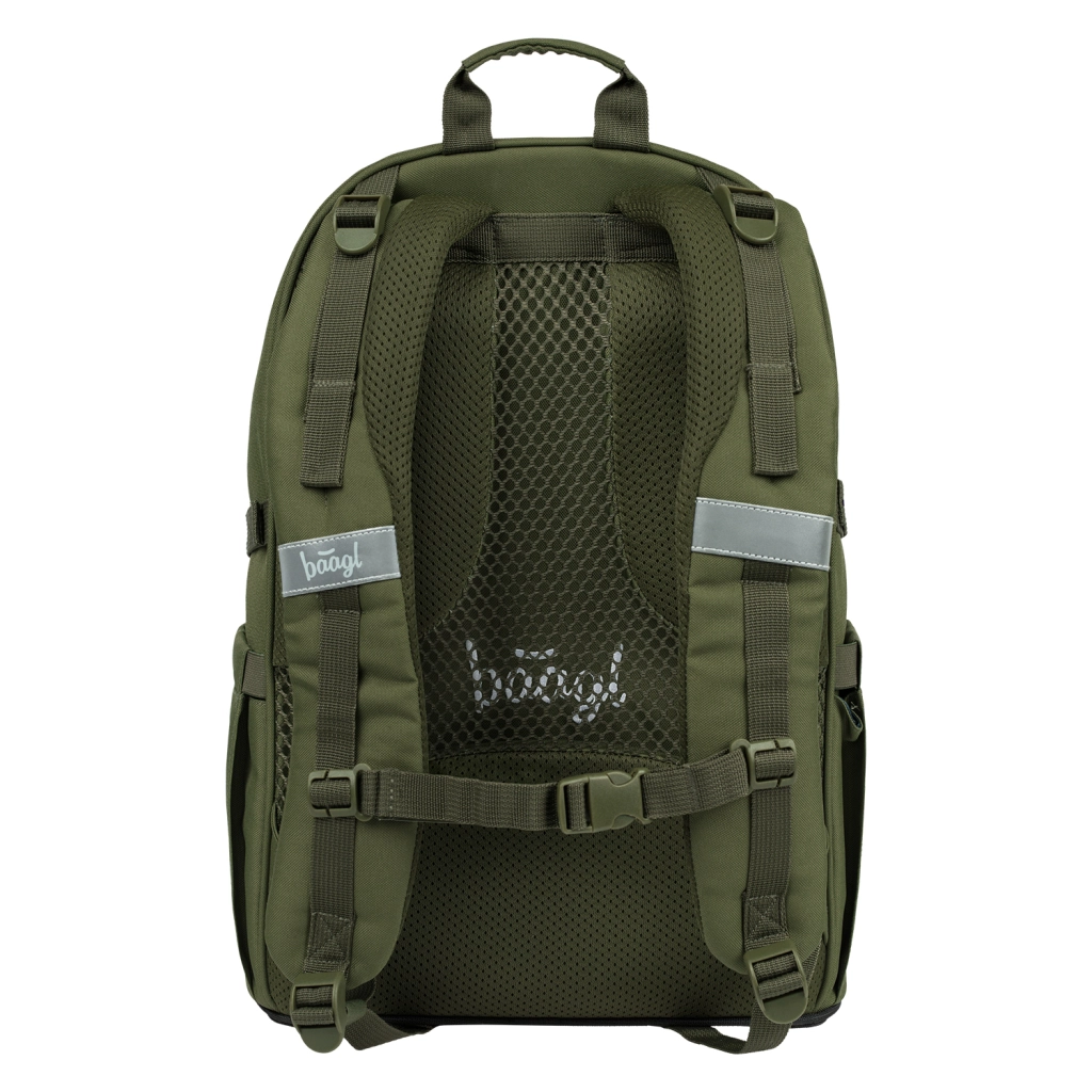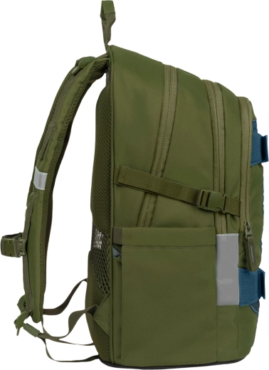 Le sac à dos SKATE OLIVE possède un dos anatomique avec renfort lombaire, des sangles de compression entièrement réglables et trois compartiments séparés. À l’intérieur, une poche rembourrée pour ordinateur portable ou tablette 15" et un organiseur pratique. Les poches latérales accueillent une gourde et les éléments réfléchissants améliorent la visibilité.