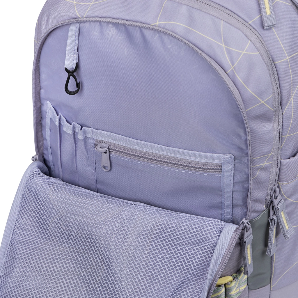 La configuration à trois compartiments avec un organiseur clair, une poche veloutée pour ordinateur portable ou tablette et des fermetures éclair YKK à double sens assurent un accès rapide et un rangement sécurisé des fournitures scolaires et de l’électronique. Les poches latérales en matériau robuste accueillent une bouteille et s’accordent avec le design du sac. Le matériau résistant et imperméable certifié GRS et les éléments réfléchissants marqués augmentent la sécurité tout en respectant l’environnement.