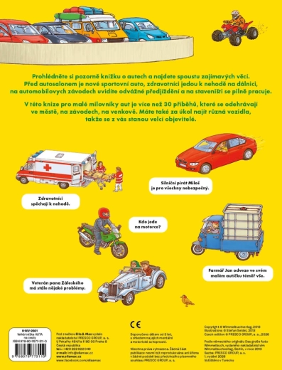 Ce livre richement illustré ravira les petits amateurs de moteurs et de machines. À chaque page, les enfants découvriront de nombreuses scènes du monde réel – des routes animées aux chantiers, jusqu’aux pistes de course. Les illustrations foisonnent de petits détails qui retiennent l’attention et encouragent l’observation et la narration.