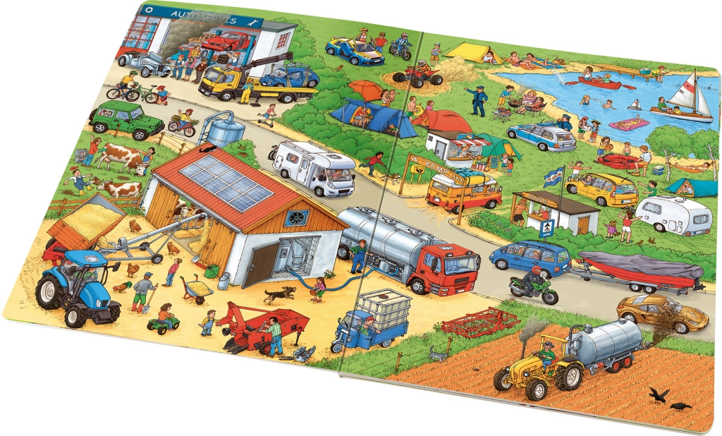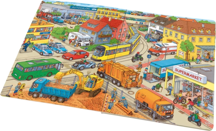 Grâce à l’exploration interactive des images, les enfants exercent leur capacité de concentration et leur raisonnement logique. Les parents peuvent engager la conversation sur ce qu’ils voient sur les pages et chercher ensemble des objets, des véhicules ou des personnages. C’est un divertissement idéal en voyage comme à la maison et cela soutient le développement naturel du langage.