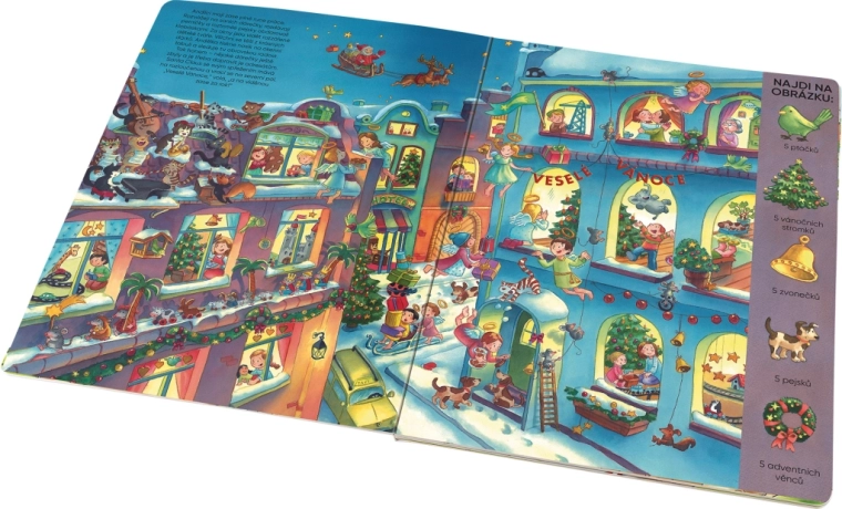 Ce grand livre illustré apporte l’atmosphère de Noël directement à la maison. Les enfants peuvent, avec leurs parents, explorer des scènes richement illustrées, raconter leurs propres histoires et, ce faisant, développer leur vocabulaire, leur attention et leur perception visuelle. Chaque double page propose des défis pour retrouver des objets selon des consignes, faisant de cet ouvrage une excellente activité pour les soirées d’hiver en famille.