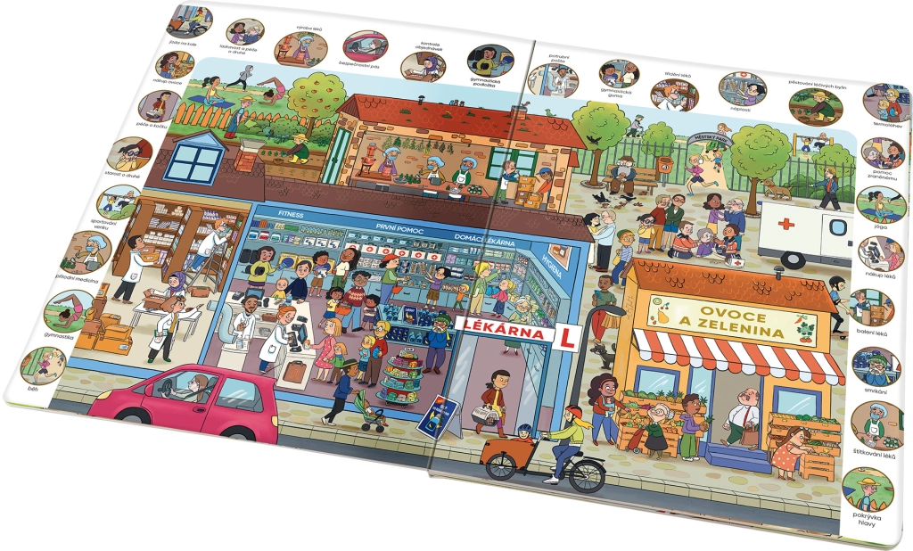 Le livre regorge d’illustrations détaillées qui stimulent la narration, l’enrichissement du vocabulaire et la curiosité naturelle. Le feuilletage en commun ouvre la voie à des discussions sur la prévention, la sécurité, les émotions et la manière de faire face aux maladies courantes.