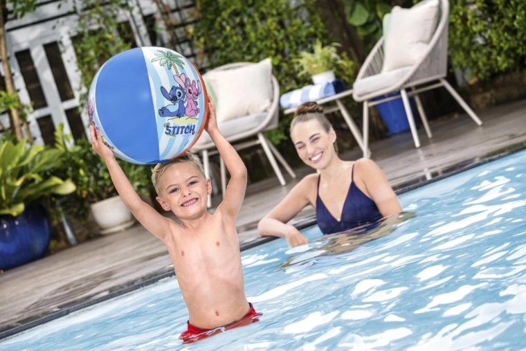 Des couleurs vives, des palmiers et le personnage préféré STITCH donnent un caractère ludique aux jeux dans l’eau comme au jardin, avec une excellente visibilité.