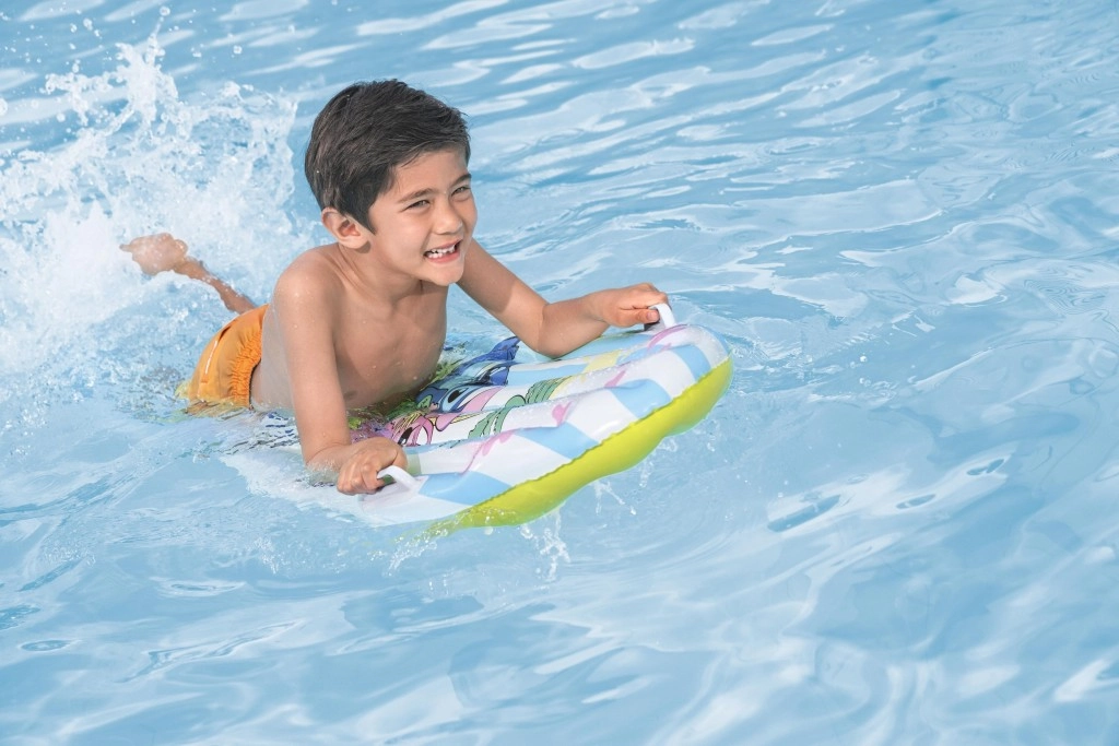 Profitez de l’été avec une planche gonflable ludique à l’effigie de DISNEY Stitch. Légère, stable et sûre, cette planche de 114 × 46 cm est idéale pour les enfants de 3 à 10 ans. Grâce à deux poignées robustes, à plusieurs chambres à air et à un matériau résistant, elle offre sécurité et confort pour les jeux aquatiques en piscine comme sur des eaux calmes.