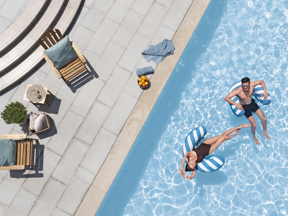 La surface premium est douce au toucher, agréable pour la peau et idéale pour de longues séances de détente au bord de l’eau. Elle est en même temps résistante et facile à entretenir.