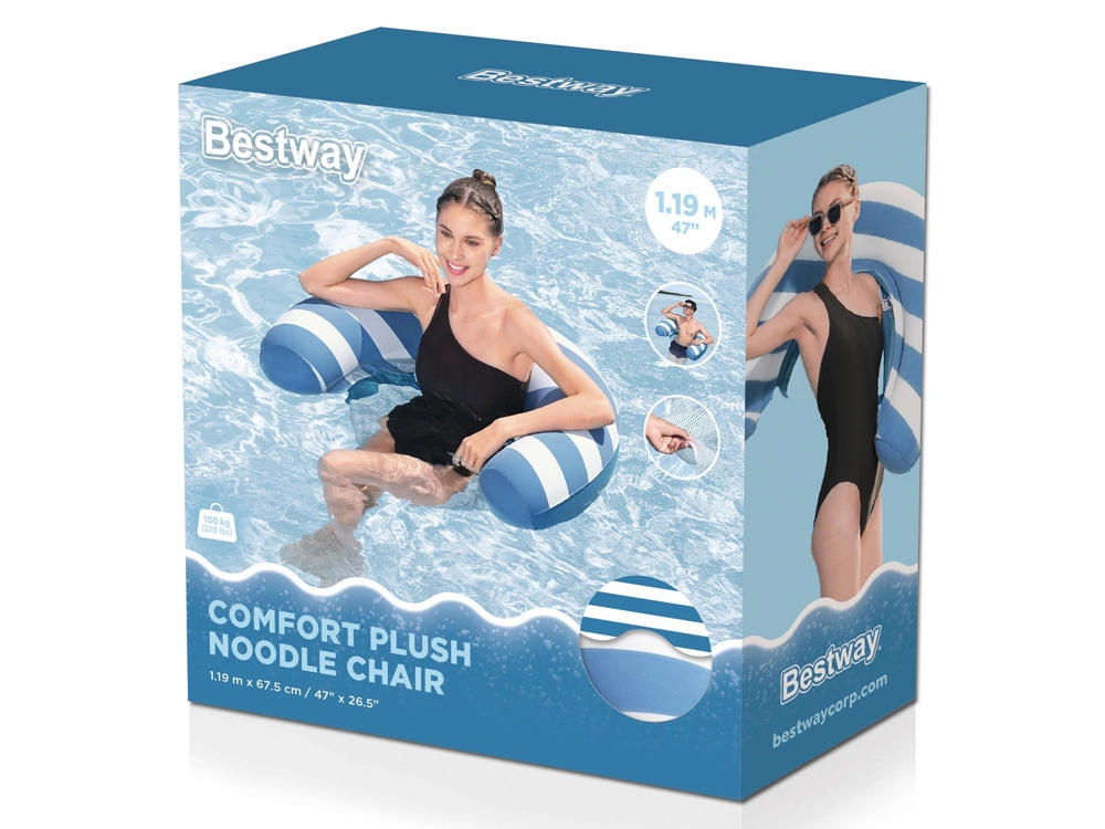 Fauteuil aquatique gonflable BESTWAY Comfort Plush avec assise en mesh respirante, offrant un confort luxueux et une excellente stabilité sur l’eau. Le matériau innovant Comfort Plush est doux et velouté au toucher et propose un effet de changement de couleur au contact de l’eau. Sa structure légère à deux chambres, avec une capacité de charge jusqu’à 100 kg, est idéale pour la piscine, la plage ou le lac.