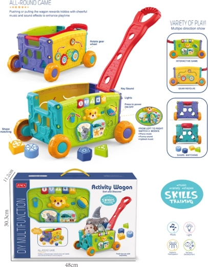 Découvrez un jouet ludique pour développer les compétences – un chariot éducatif à tirer avec tri des formes et des couleurs. Il favorise la motricité fine, la pensée logique et la coordination œil-main. Grâce à sa conception robuste et à son design clair, il est idéal pour apprendre en jouant à la maison comme en déplacement.