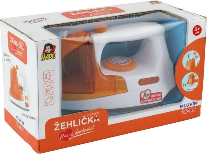 Tous les petits aides apprécieront le luxueux fer à repasser à piles, qui ravira le cœur de chaque enfant. Le fer se réchauffe et une mélodie agréable retentit avec une annonce en tchèque.