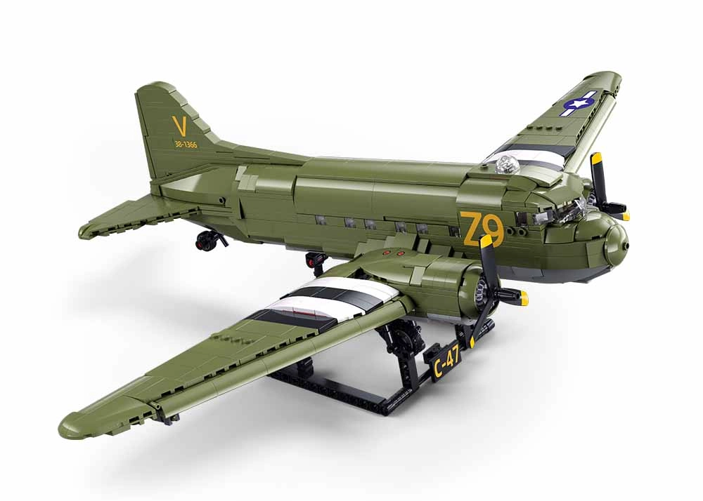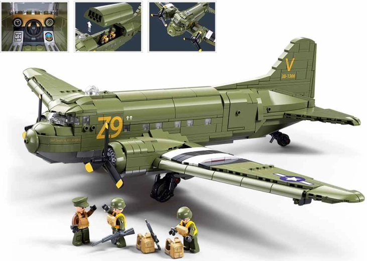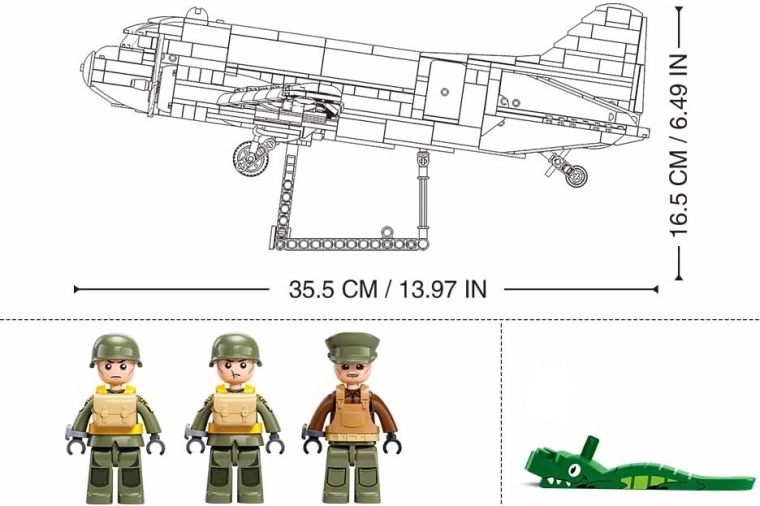 Ce set détaillé reproduit fidèlement l’iconique avion de transport bimoteur avec fuselage large, ailes travaillées et éléments authentiques d’un appareil militaire. Grâce au cockpit ouvrant et à la section de chargement arrière, vous mettez facilement en scène des opérations aéroportées et des scénarios de jeu réalistes. Les hélices rotatives et le train fonctionnel apportent dynamisme et prestance au modèle, sur l’étagère comme en jeu.
