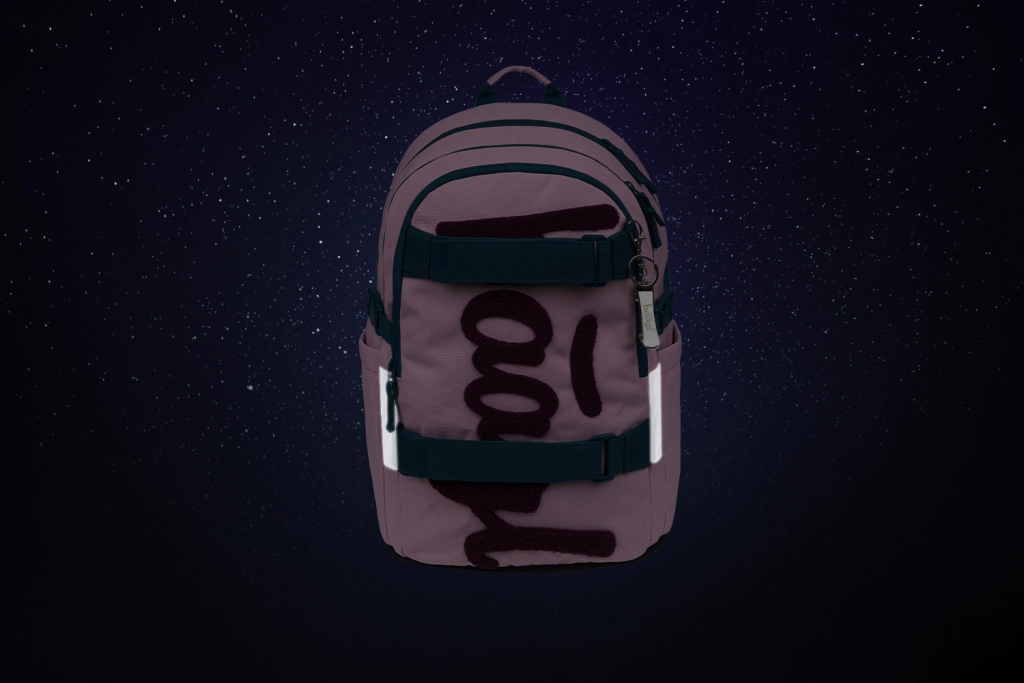 Trois compartiments à fermeture indépendante offrent un espace clair pour manuels et cahiers, tandis que l’organiseur interne, le porte-clés et la poche rembourrée pour ordinateur portable ou tablette 15" maintiennent tout bien en place et en sécurité. Les poches latérales en matériau résistant sont idéales pour une gourde. Le tissu recyclé déperlant certifié GRS, les éléments réfléchissants pour une meilleure visibilité et les fermetures robustes YKK soulignent une finition haut de gamme.