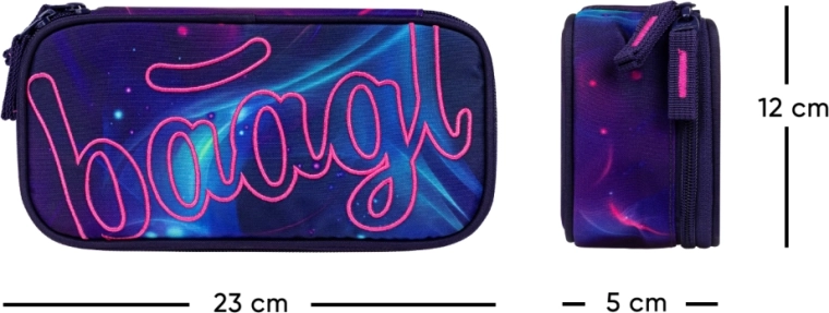 La trousse Baagl Nova GRS au design galactique allie look moderne, praticité et durabilité. Le compartiment principal avec double rabat facilite le rangement clair des crayons, crayons de couleur, feutres et règles, tandis que la poche intérieure et la fenêtre transparente pour l’emploi du temps aident à garder la journée d’école sous contrôle.