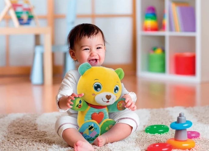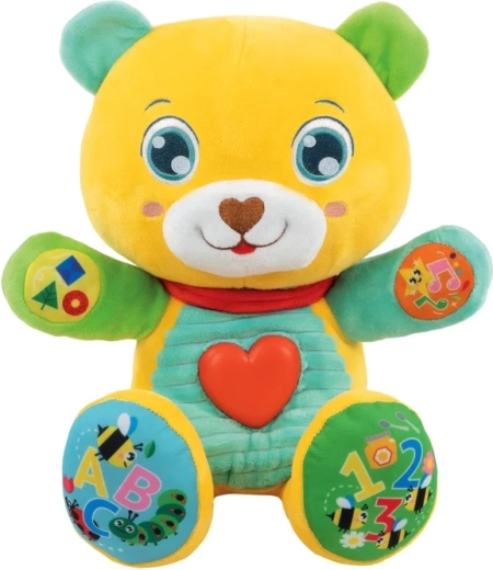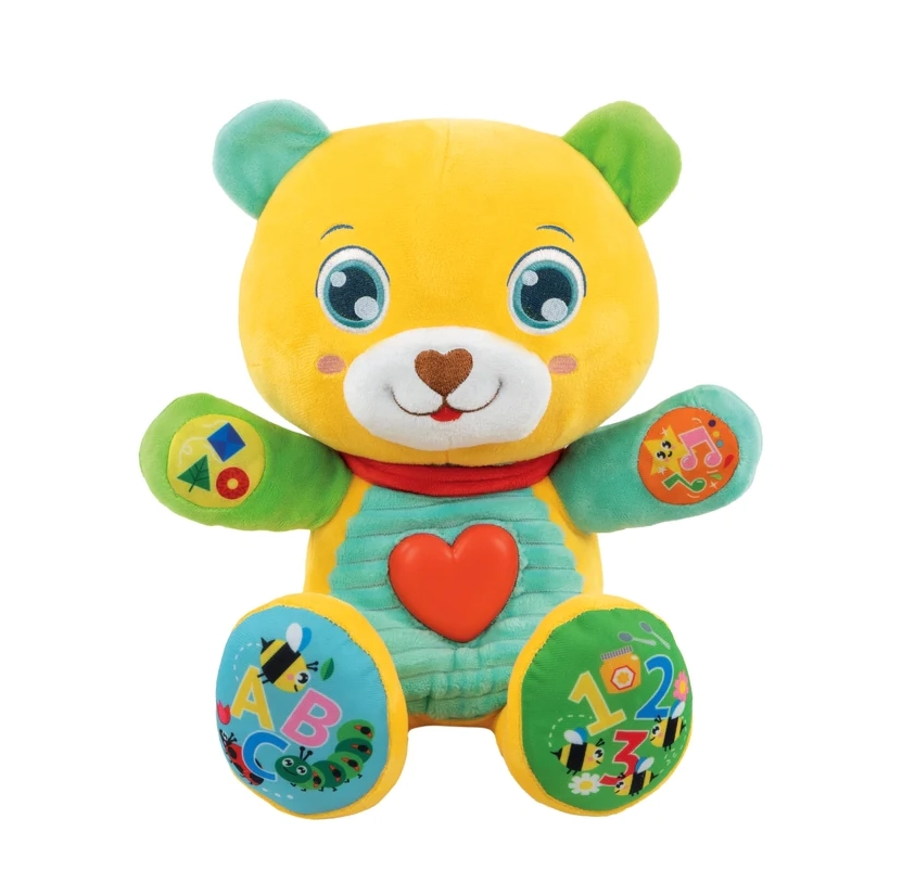 Lorsque l’enfant appuie sur les boutons, l’ours parle et apprend les premières lettres, les chiffres, les formes et les couleurs – idéal pour le développement précoce du langage et de la cognition.
