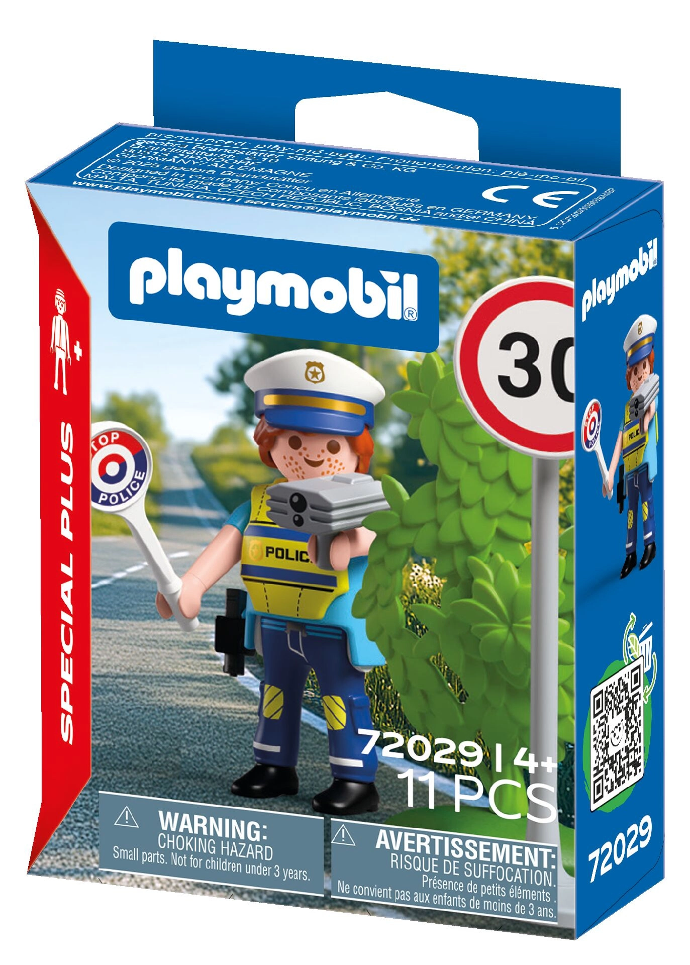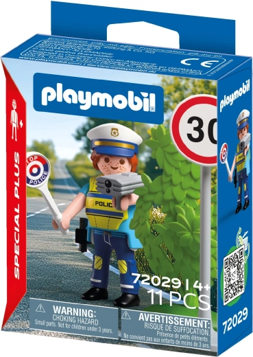 Prenez votre service et veillez à la sécurité routière avec le set de jeu PLAYMOBIL Special Plus. Il comprend un policier avec radar, un panneau 30 km/h, une palette STOP et d'autres accessoires pour des scènes de circulation réalistes et un jeu de rôle créatif.