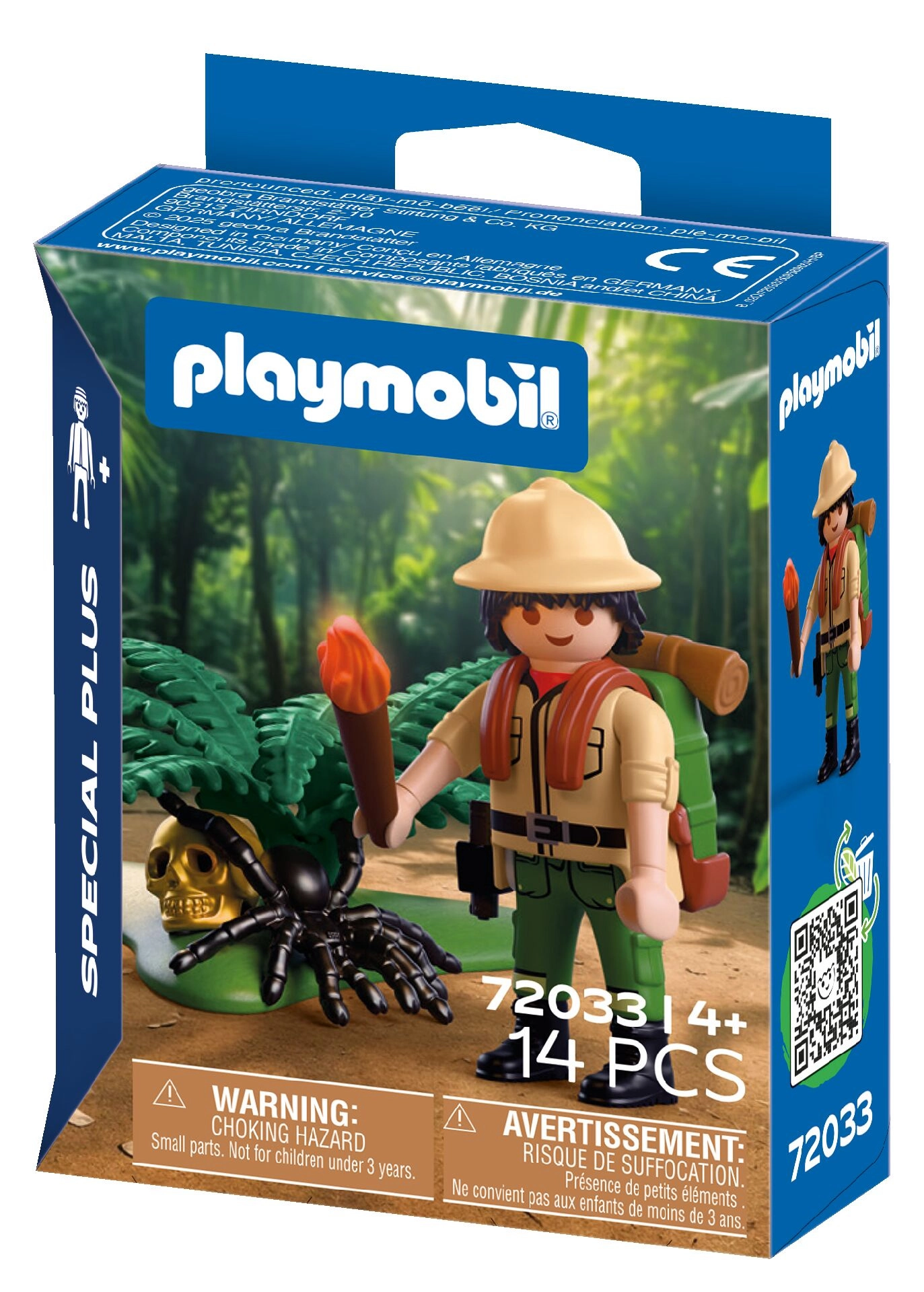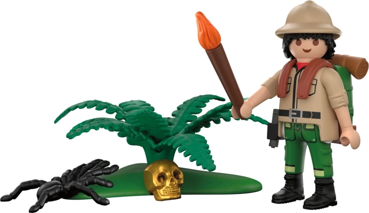 Explore la jungle avec la figurine PLAYMOBIL Special Plus et son riche équipement. Le set comprend une figurine d’aventurier articulée, un sac à dos amovible, une torche, un crâne doré, une araignée et d’autres éléments pour jouer de façon créative et développer l’imagination.