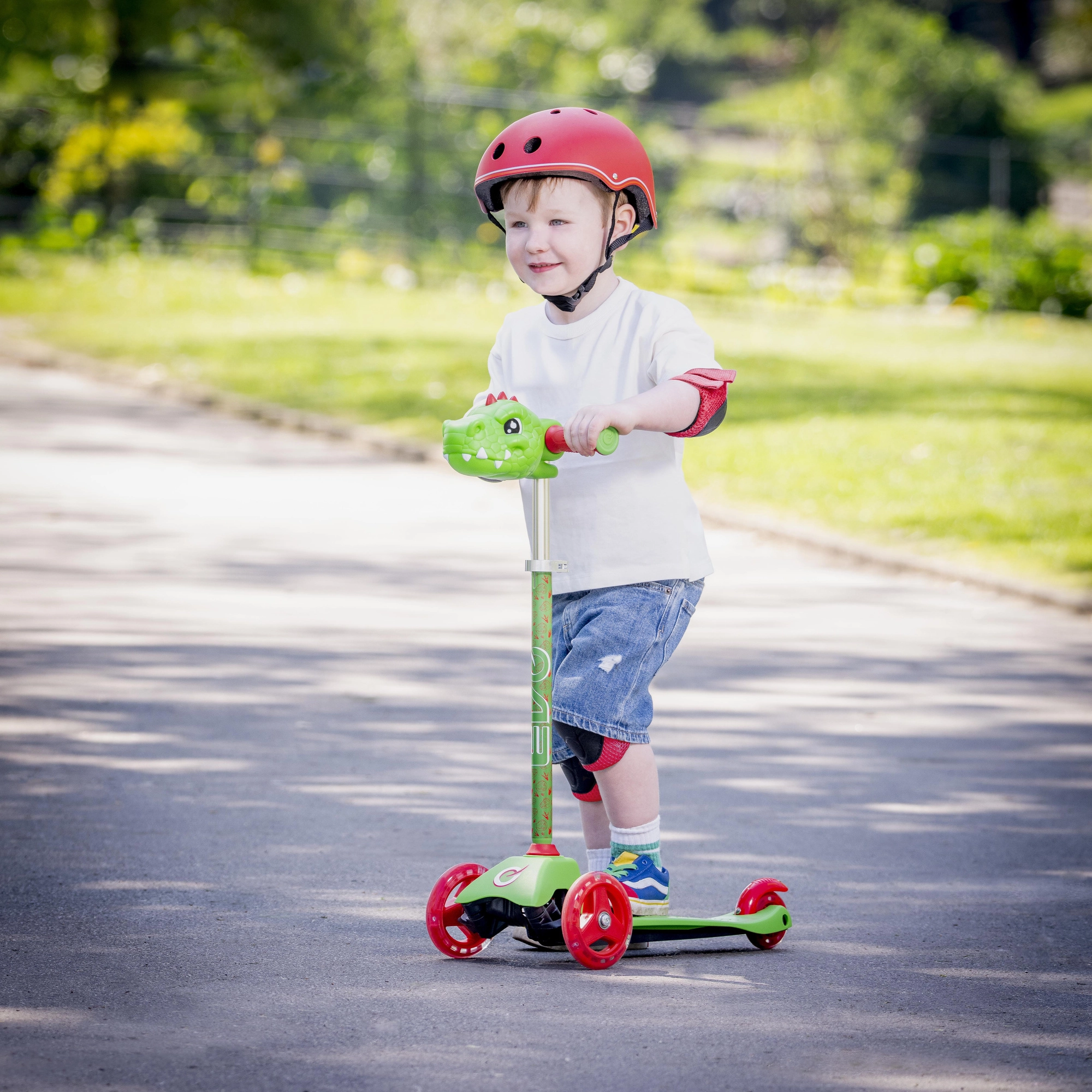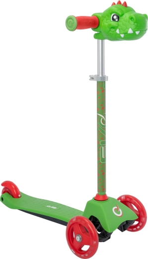 La croissance de l’enfant est accompagnée par la hauteur de guidon réglable (env. 62–72 cm), de sorte que la trottinette dure plusieurs saisons. Les lumières LED dans les roues avant ajoutent des éclats de couleur pendant la conduite, ce qui amuse les enfants et renforce leur visibilité. Le frein arrière au pied fait également office de garde-boue et permet un arrêt rapide et intuitif.