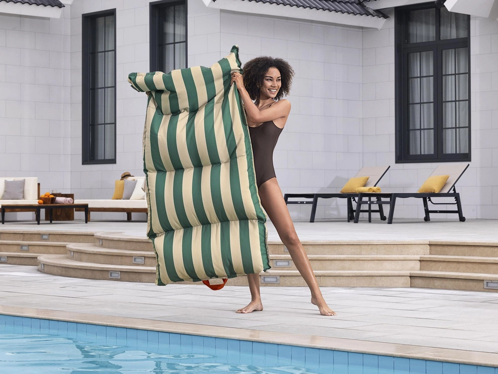 Le fond en maille évacue l’eau efficacement, ce qui permet de garder le matelas propre et de le préparer rapidement pour la prochaine utilisation. Avec ses dimensions de 183 × 90 × 20 cm et une capacité de charge jusqu’à 140 kg, il convient aux adultes et aux adolescents plus âgés (14+). Les élégantes rayures vert-beige s’intègrent parfaitement à votre style de piscine.