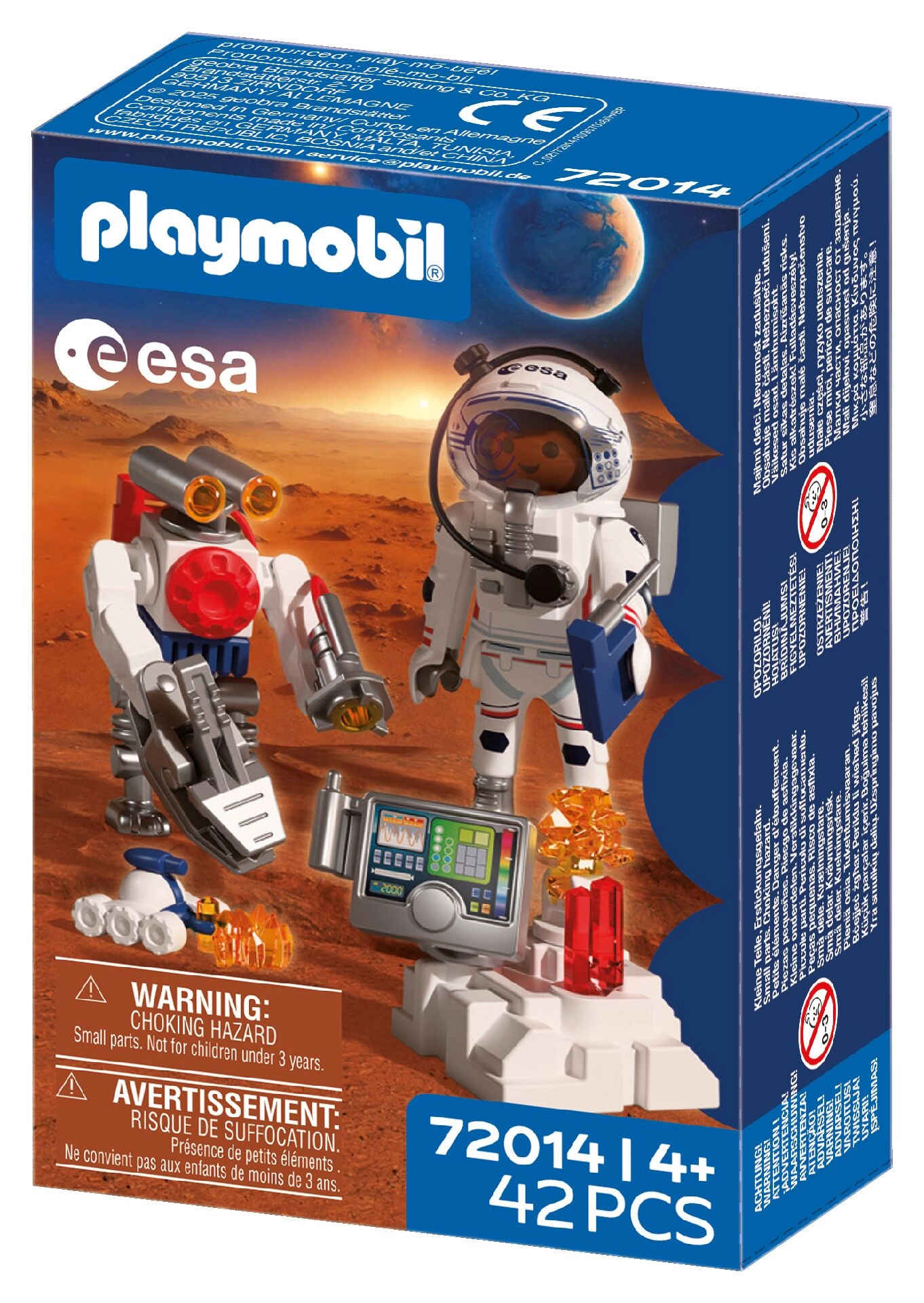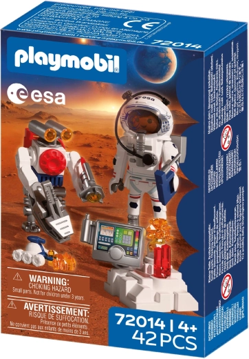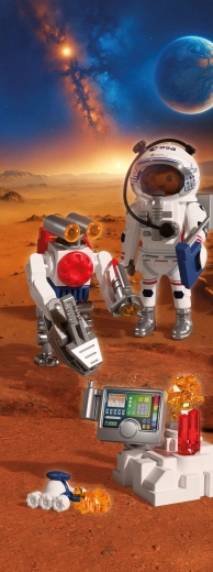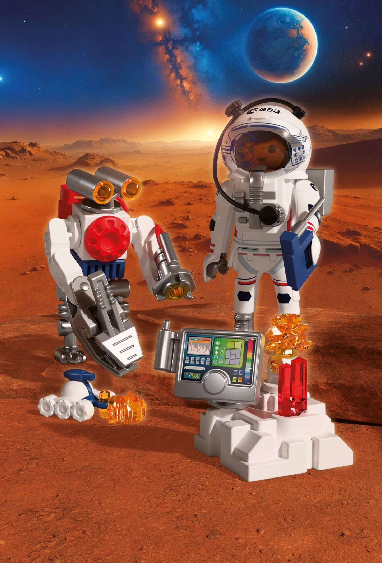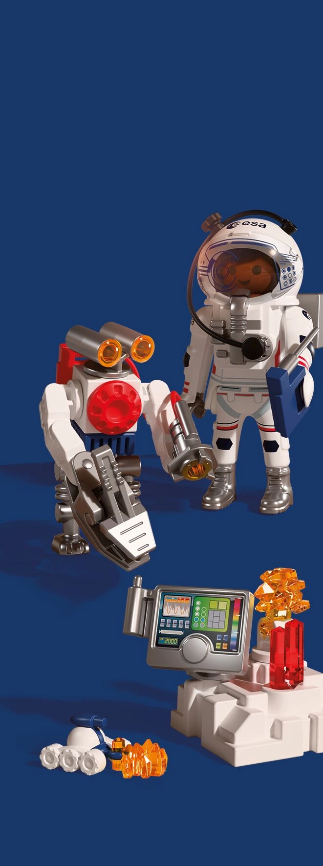 Vivez une véritable aventure spatiale avec PLAYMOBIL en collaboration avec l’ESA. Avec l’aide d’un robot agile et d’un véhicule habile, l’astronaute explore la surface de la planète rouge, collecte des échantillons de sol et capte des signaux mystérieux provenant des profondeurs de Mars.