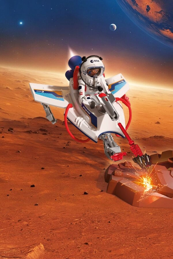 Explorez la planète rouge avec le set de jeu PLAYMOBIL inspiré par la collaboration avec l’ESA. Le planeur spatial doté d’un bras pivotant, d’un lance-projectiles et de « cristaux » lumineux invite les enfants à vivre des missions palpitantes sur Mars. Il comprend une figurine articulée d’astronaute, des accessoires détaillés et peut se combiner avec d’autres sets PLAYMOBIL.