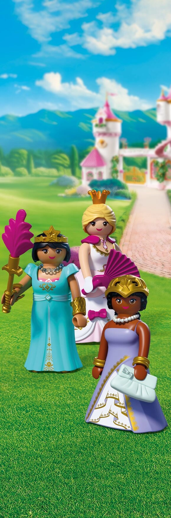 Trois princesses charmantes invitent les enfants dans un univers d’aventures royales. Grâce aux robes, jupes et bijoux interchangeables, les petits créateurs peuvent facilement changer le look des personnages et inventer sans cesse de nouvelles histoires – du grand bal aux promenades dans les jardins du château.