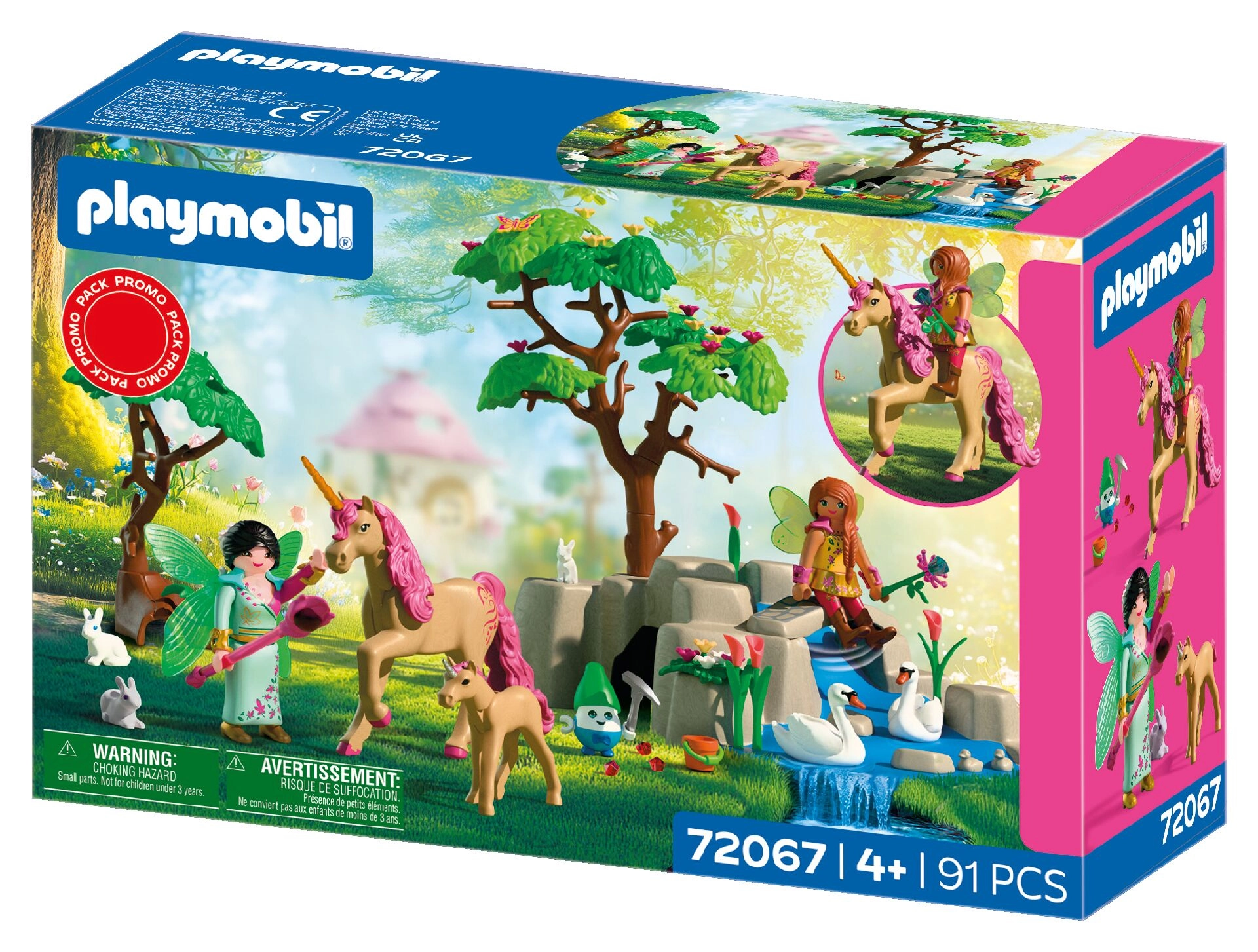 Découvrez le monde féerique de l’imaginaire avec le set PLAYMOBIL, où deux fées voyagent avec une licorne et son poulain à travers un paysage pittoresque rempli d’animaux, de fleurs et de trésors scintillants. Grâce à de nombreux accessoires, à des figurines articulées et à la possibilité de monter la licorne, ce set offre des histoires sans fin et un jeu créatif pour les enfants dès 4 ans.