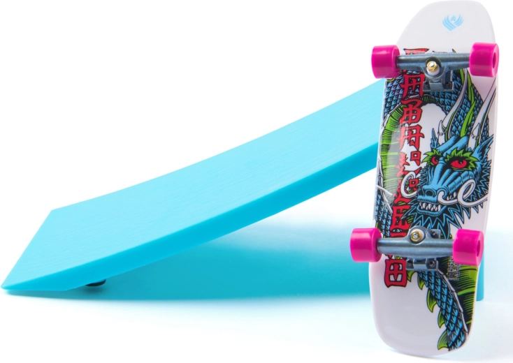 La rampe en plastique fournie, avec surface texturée, est idéale pour les sauts, drops et atterrissages fluides – faites passer vos tricks au doigt au niveau supérieur.