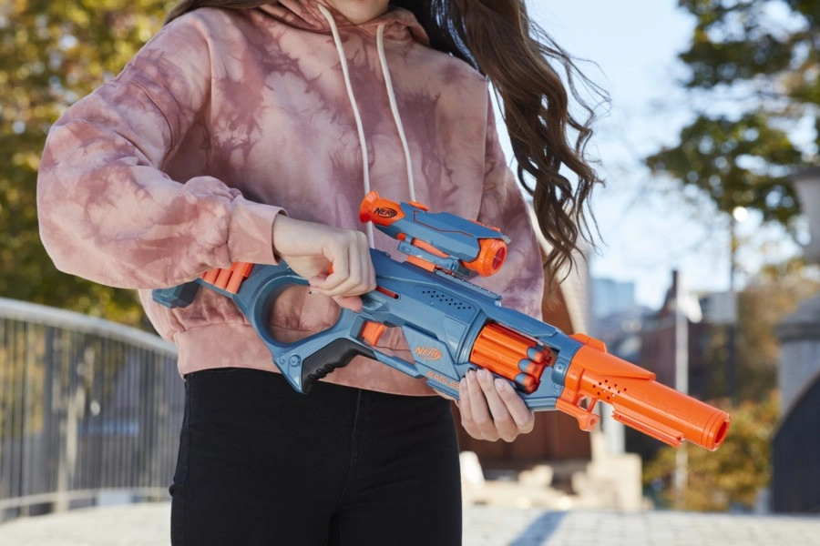L’unicité du blaster est renforcée par 3 rails tactiques pour connecter des accessoires supplémentaires (vendus séparément). Sans besoin de piles, nous recommandons le port de lunettes de protection (non incluses).