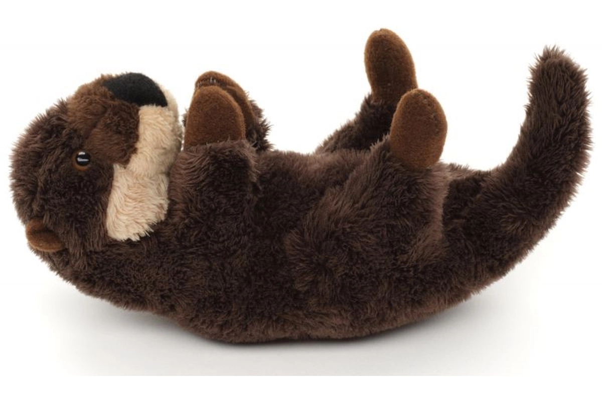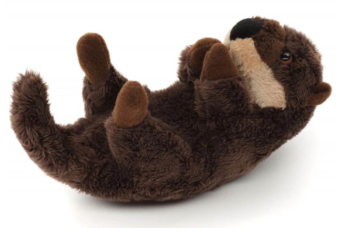 Une forme réaliste de loutre sur le dos avec une longue queue et un museau contrasté ravira enfants et adultes.