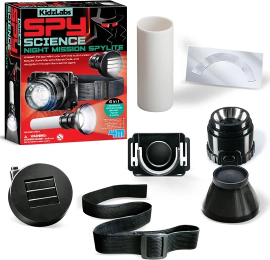 Transformez-vous en petit agent avec la lampe multifonction SpyLite de 4M KidzLabs. Les enfants peuvent se déplacer en toute sécurité dans l’obscurité, envoyer des messages en code Morse et découvrir l’univers des missions secrètes. Idéal pour les jeux nocturnes, les camps et les aventures à la maison. Lumière sûre, code Morse et activités d’espionnage amusantes en un seul produit.
