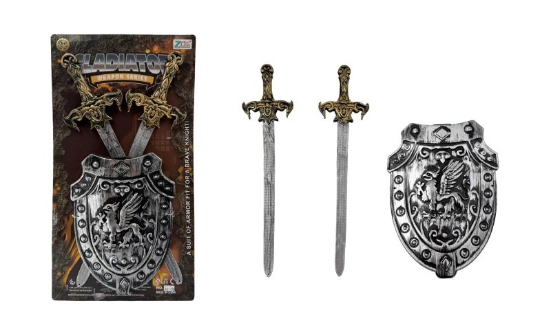 Grâce à la combinaison d’un bouclier de protection et de deux pièces d’armement (par ex. des épées ou des massettes), les enfants profiteront d’heures de divertissement dans des combats imaginaires. Le set convient au jeu en intérieur comme en extérieur, que ce soit dans le jardin, sur l’aire de jeux ou dans la chambre d’enfant.