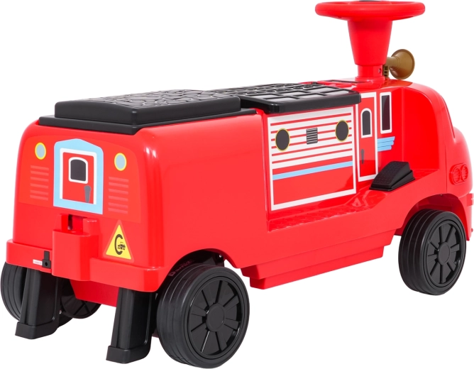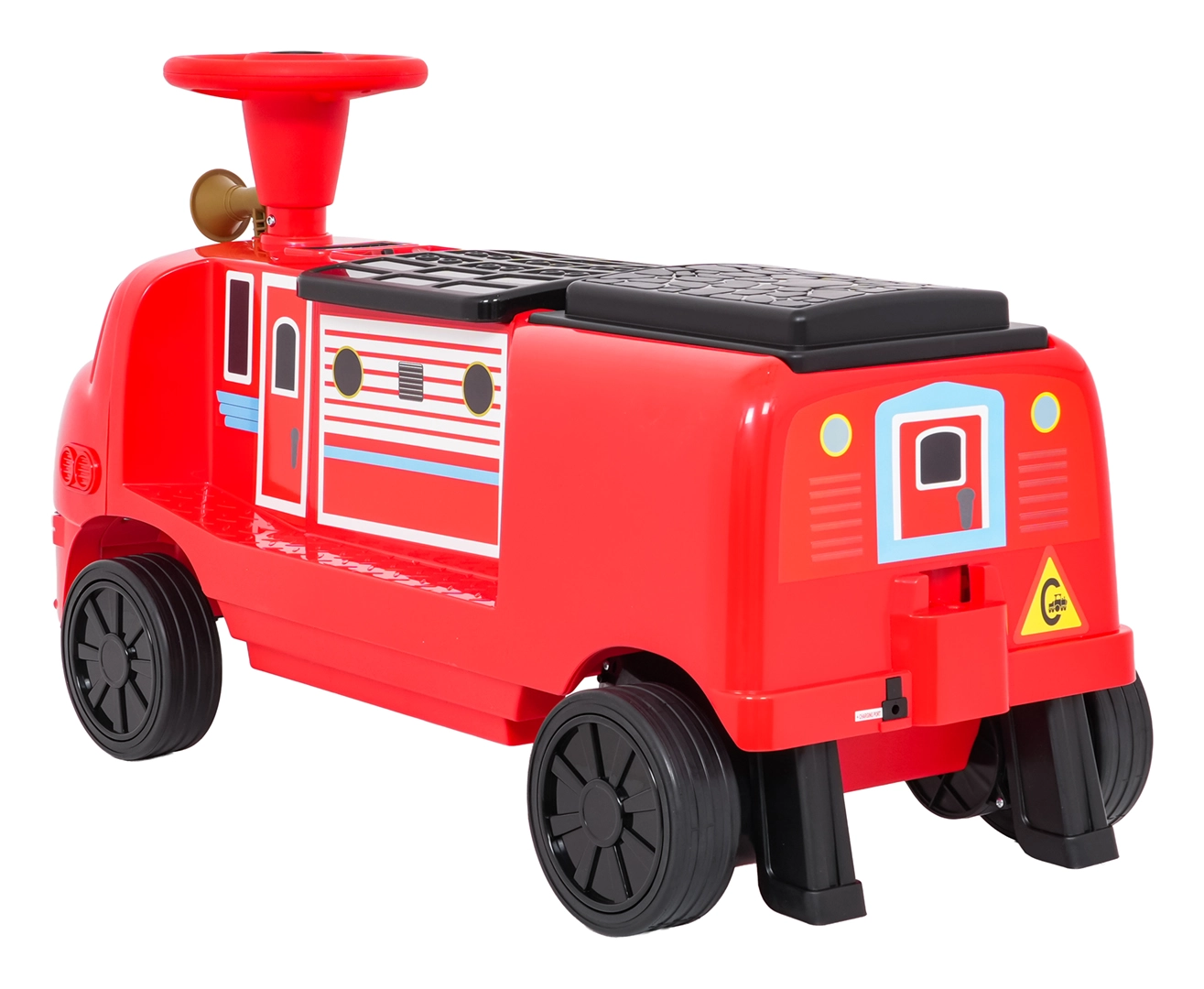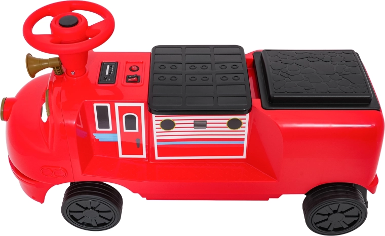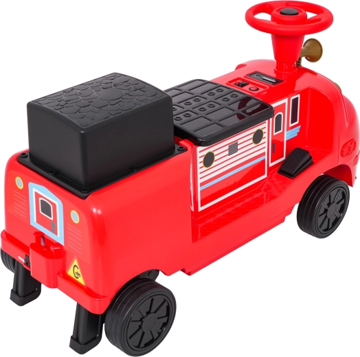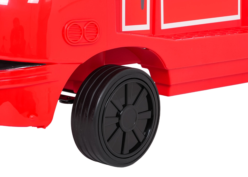 Cette locomotive pour enfants au style inspiré d’un petit train de pompiers allie la stabilité d’une draisienne aux avantages de la propulsion électrique. Deux moteurs 2×35 W et une batterie 12 V/7 Ah fournissent assez de puissance pour rouler sur le trottoir comme à la maison. Les roues en caoutchouc garantissent une bonne adhérence et un fonctionnement silencieux, tandis que le démarrage progressif évite les secousses au départ.