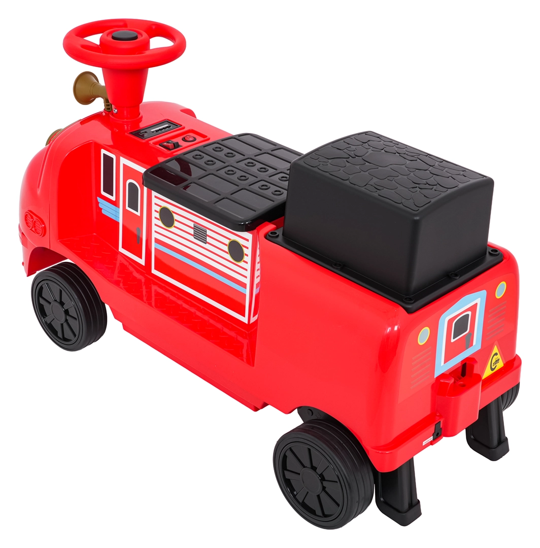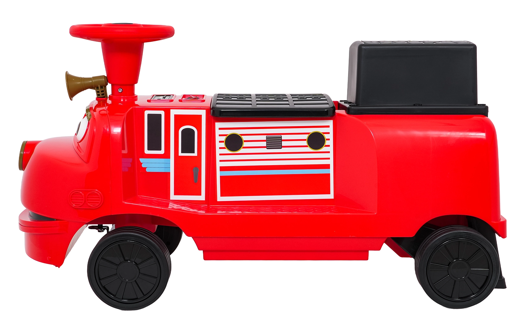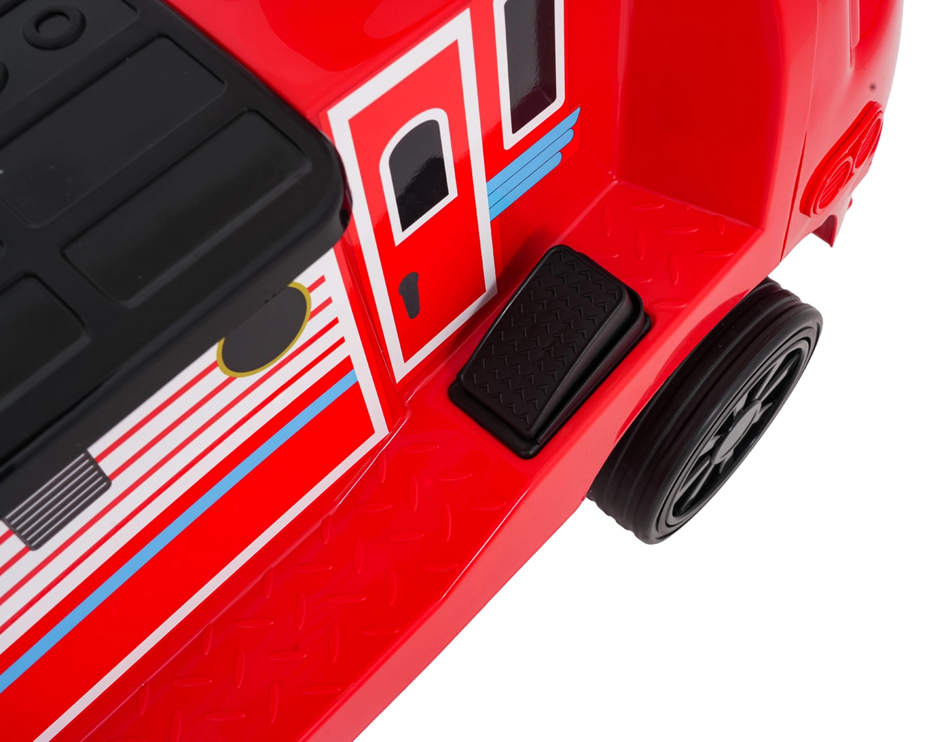 Cette locomotive pour enfants au style inspiré d’un petit train de pompiers allie la stabilité d’une draisienne aux avantages de la propulsion électrique. Deux moteurs 2×35 W et une batterie 12 V/7 Ah fournissent assez de puissance pour rouler sur le trottoir comme à la maison. Les roues en caoutchouc garantissent une bonne adhérence et un fonctionnement silencieux, tandis que le démarrage progressif évite les secousses au départ.