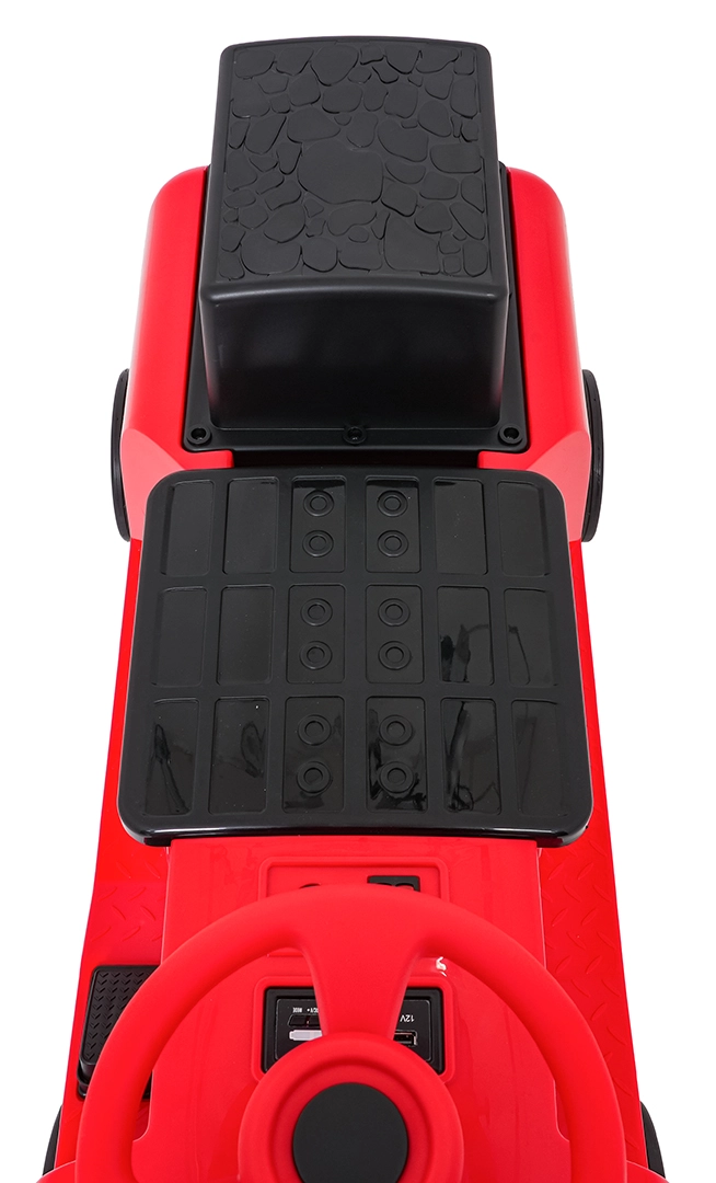 Le divertissement est assuré par le panneau multimédia : Bluetooth pour la lecture sans fil, entrées USB/AUX/MP3 et mélodies préinstallées. Les phares LED avant apportent un look réaliste et améliorent la visibilité. Le siège double pratique (23×25 cm ×2) permet d’emmener un ami ou un frère/une sœur, tandis que la construction robuste supporte jusqu’à 60 kg.