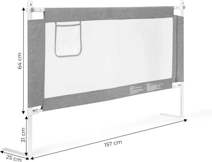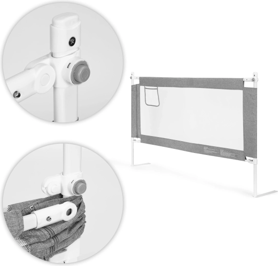La partie supérieure de la barrière se rabats facilement via un bouton, rendant l’accès au lit et à l’enfant rapide et confortable. La poche intégrée garde tétine, biberon ou mouchoirs à portée de main. Les barrières peuvent être reliées en un ensemble continu pour protéger plusieurs côtés du lit.