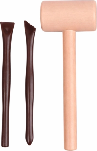 Un petit marteau en bois, un burin et un pinceau adaptés aux enfants développent la motricité fine et la précision. Idéal pour un amusement sûr à la maison.