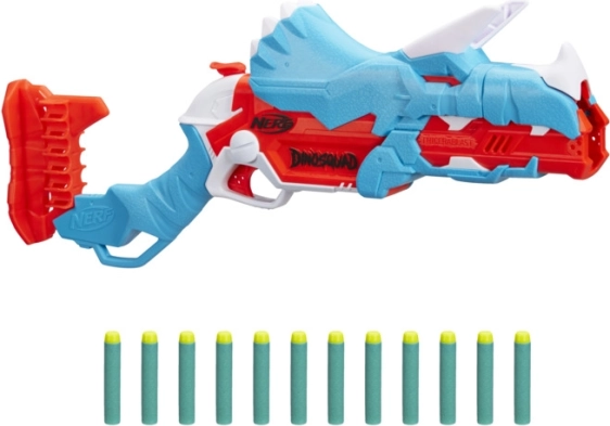 Le blaster est stylisé à l'image du dinosaure Triceratops bien-aimé. Son design unique apporte du plaisir dans le monde des dinosaures, que les enfants adorent.