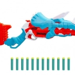 Grâce au mécanisme d'ouverture, le chargement est un jeu d'enfant. Il suffit d'appuyer sur la corne sur la tête du dinosaure et la chambre à fléchettes est prête pour trois fléchettes en mousse.