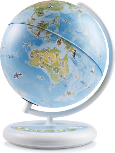 Parcourez toute la planète depuis la maison. Le globe interactif Junior de la collection Lecture Magique présente aux enfants, de façon accessible, les continents, pays, capitales, mers et océans. Grâce au stylo électronique (vendu séparément), ils écoutent des faits curieux sur les animaux exotiques, les plantes étonnantes et les monuments célèbres. Des icônes claires, la nouvelle fonction de double-clic et un socle stable assurent une prise en main confortable et un apprentissage sans temps morts.