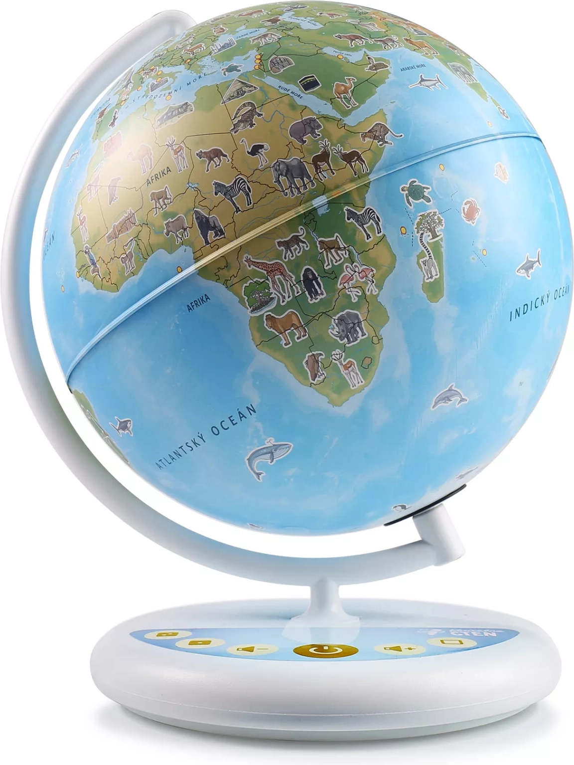 Le globe Junior a été développé en collaboration avec des spécialistes de la géographie et contient plus de 800 pistes audio en tchèque. Les enfants peuvent approfondir chaque thème — en cliquant de nouveau sur un pays, ils découvrent ce qui lui est typique, comment on y vit et pourquoi il mérite une visite. Des quiz interactifs aident à ancrer les nouvelles connaissances et à les tester de façon amusante.