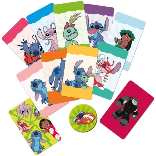 Profitez d’un divertissement rapide avec les personnages populaires STITCH et Angel dans un jeu de cartes compact pour les déplacements. Gagne celui qui réunit en premier 5 cartes de la même couleur. Idéal pour 2 à 5 joueurs dès 5 ans – règles simples, manches dynamiques et fous rires à tout moment, où que vous soyez.