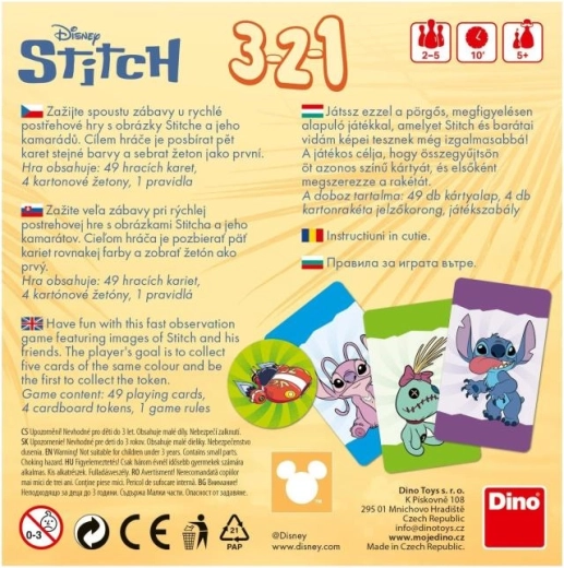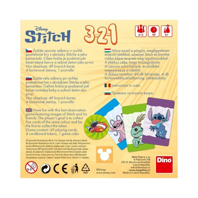 Vous cherchez un jeu de voyage rapide et facile à comprendre ? Le jeu de cartes de voyage 3-2-1 STITCH apporte une dose de fun coloré avec les héros appréciés STITCH et Angel. L’objectif est de rassembler le plus vite possible cinq cartes de la même couleur pour devancer vos adversaires.