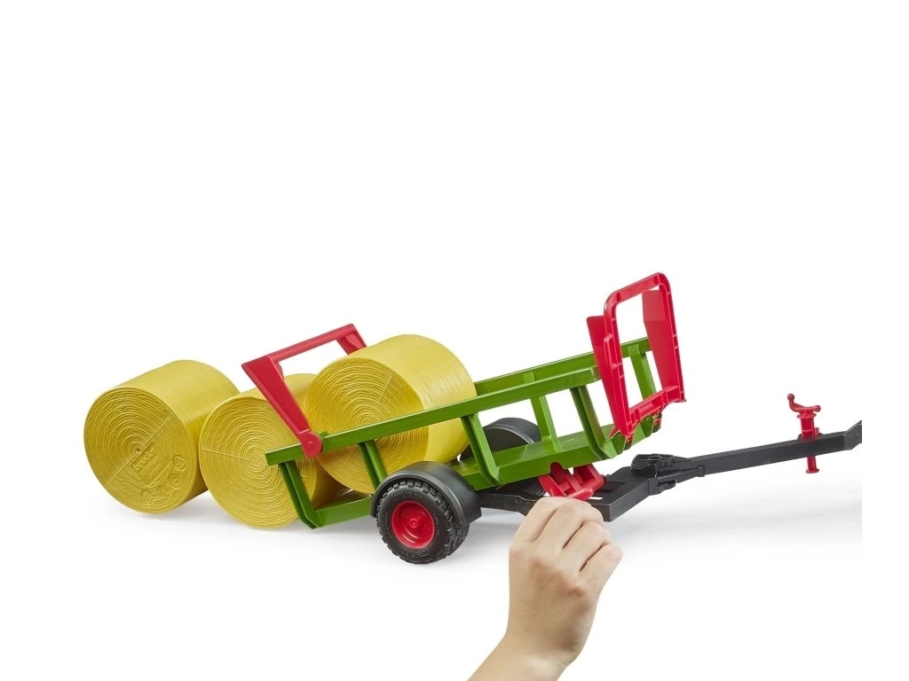 La remorque pour balles BRUDER est un modèle détaillé à l’échelle 1:16 qui permet aux enfants d’imiter de véritables opérations agricoles. Grâce au déport latéral de la barre d’attelage, les balles peuvent être facilement guidées vers le mécanisme de ramassage et déposées en toute sécurité sur la plateforme de chargement. Pour le déchargement, il suffit d’ouvrir les verrous et de basculer la plateforme – les balles sont en un instant de retour au sol.