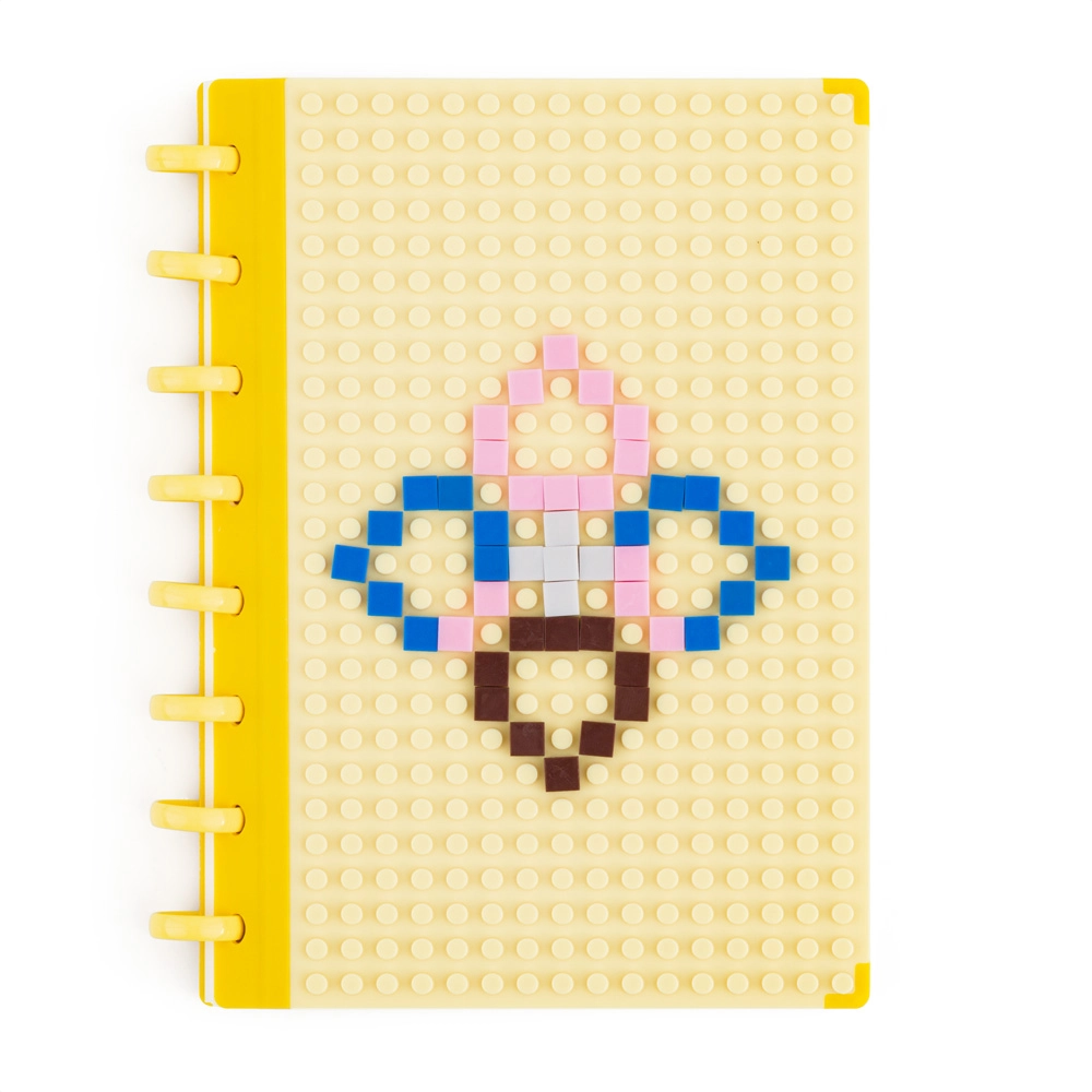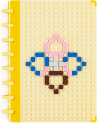 Un bloc-notes A5 ludique et pratique avec une couverture jaune à tenons pour briques qui égayera chaque prise de notes. Enfants comme adultes créatifs peuvent composer sur la couverture, à l’aide des briques fournies, leur motif original personnalisé. Le bloc offre 80 feuilles lignées, une couverture en plastique résistante et une reliure à anneaux pour tourner les pages facilement. L’emballage comprend 60 briques pour une créativité sans fin.