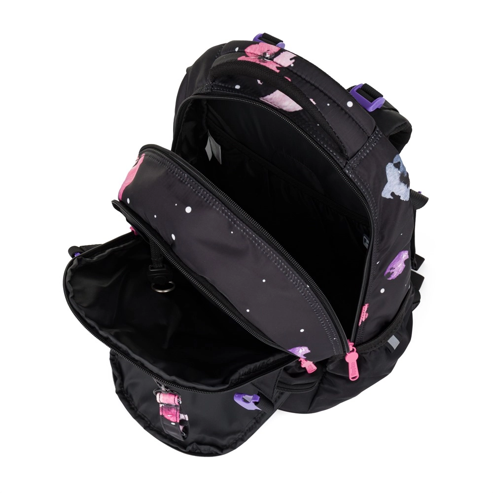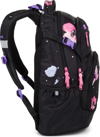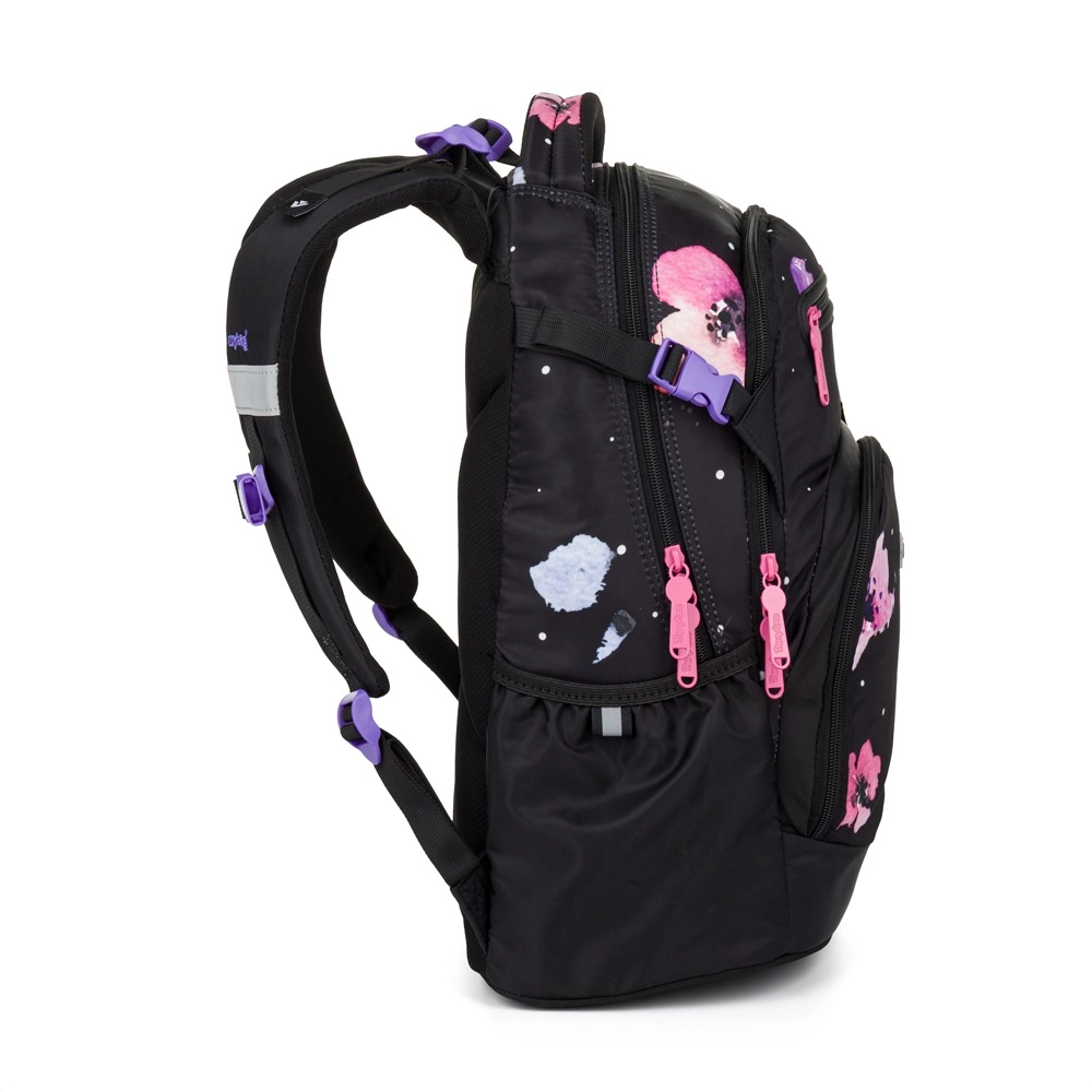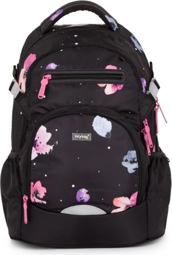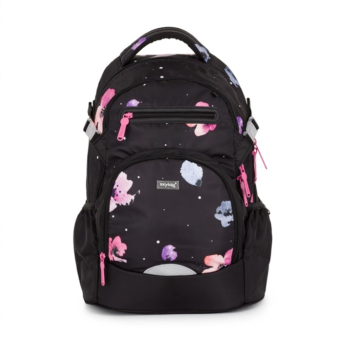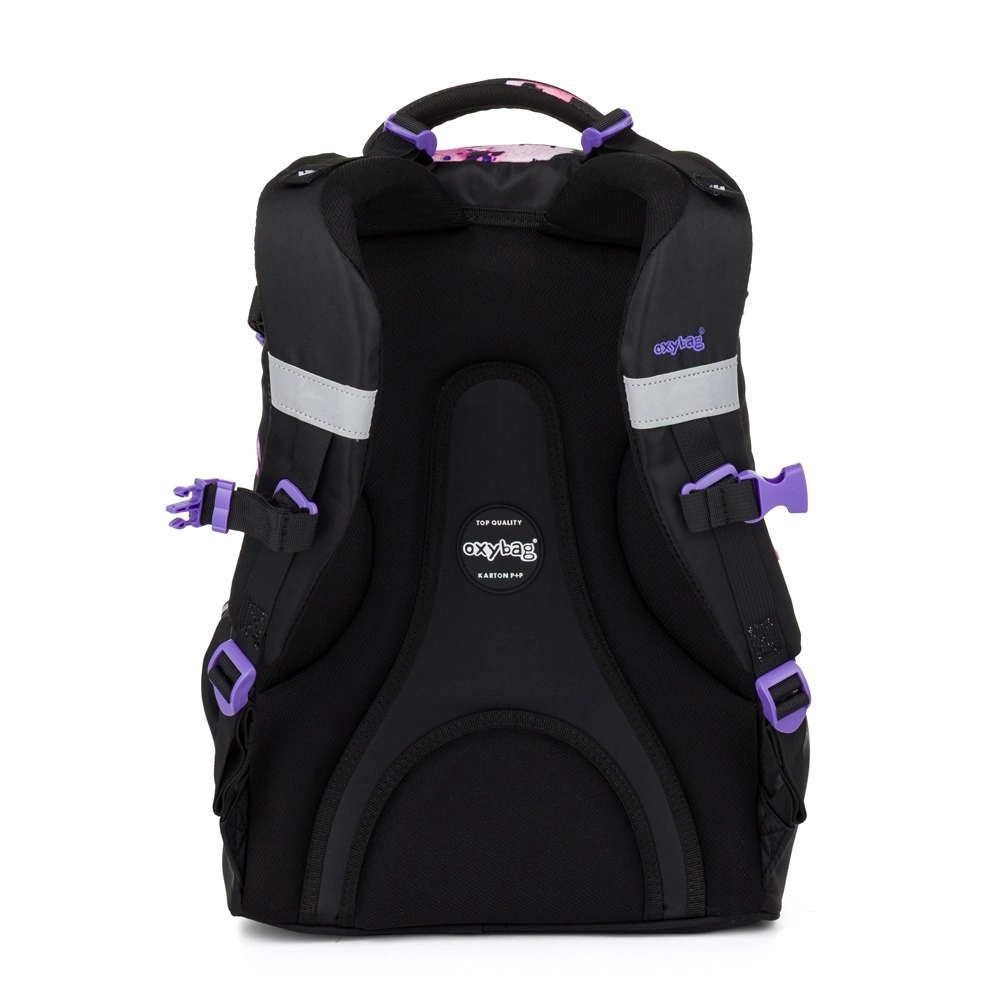 Le sac à dos scolaire OXY Ombre Flowers est conçu pour un port quotidien confortable dès la 3e classe. Grâce à son panneau dorsal ergonomique (longueur 43 cm) et à ses bretelles d’épaules souplement rembourrées, il s’adapte parfaitement au dos des enfants. La sangle de poitrine réglable maintient les bretelles en place, tandis que le fond rigide et stable empêche le renversement et protège le contenu.