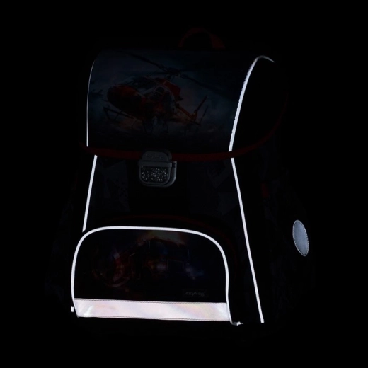 Le sac à dos scolaire Premium au motif des pompiers favorise une bonne posture grâce au dos anatomiquement profilé et à la structure interne renforcée qui maintient sa forme. Le rembourrage respirant et les larges bretelles rembourrées réglables répartissent uniformément la charge sur les épaules de l’enfant. La sécurité est renforcée par une boucle métallique avec élément réfléchissant et de nombreux éléments réfléchissants pour une meilleure visibilité.