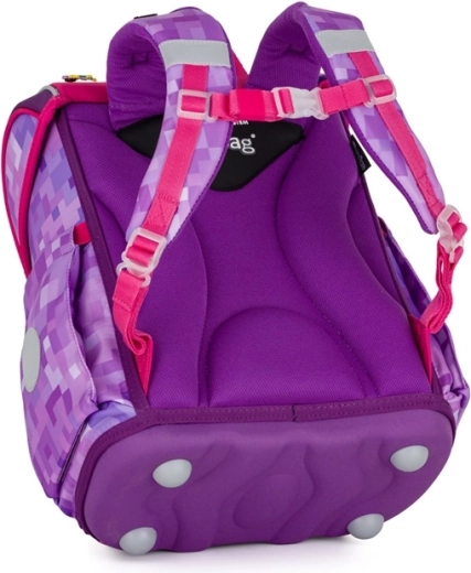 Cartable scolaire stylé avec motif pixel art dans des tons de violet et de rose, doté d’un dos anatomique, d’une construction rigide et d’une boucle métallique de sécurité avec élément réfléchissant. Grâce à un unique compartiment spacieux, une poche frontale pour le goûter et des éléments réfléchissants, il est idéal pour les élèves de 1re à 2e année.