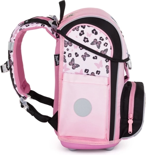 Ce cartable scolaire PREMIUM Panda rose est conçu pour une bonne posture des jeunes écoliers. Le dos anatomique avec renfort interne maintient une forme stable, tandis que le rembourrage respirant et les larges bretelles rembourrées répartissent la charge de manière uniforme et confortable. Grâce aux crochets supplémentaires, les bretelles peuvent être mieux réglées pour une tenue stable sur le dos.