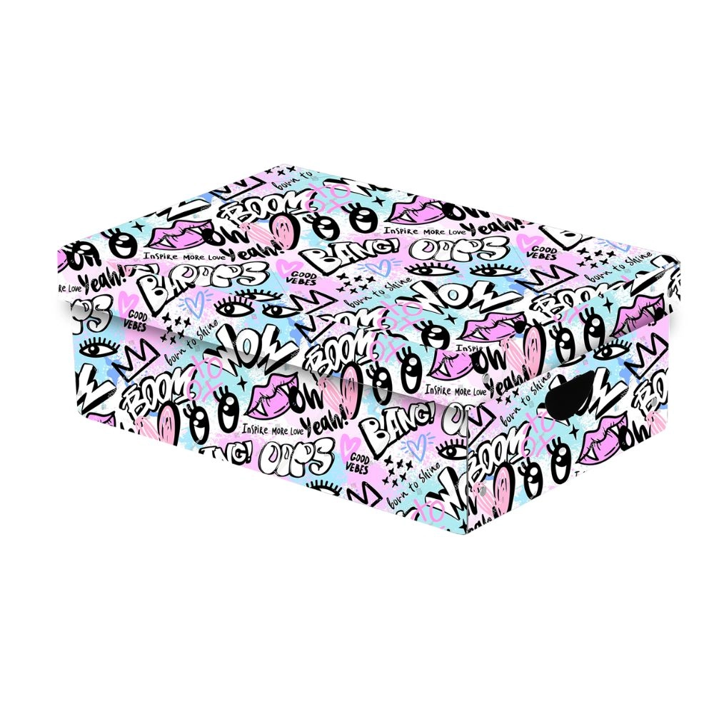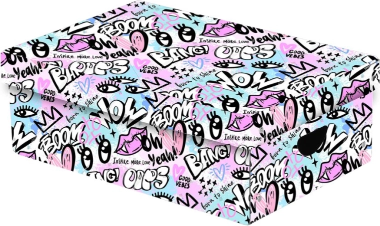 Gardez de l’ordre avec une boîte spacieuse en laminé résistant qui protège vos affaires de la poussière et des dommages. Grâce aux découpes pratiques servant de poignées, vous la transporterez aisément où vous en avez besoin. Le design « Funny Girl » apporte à votre intérieur une touche ludique et moderne.