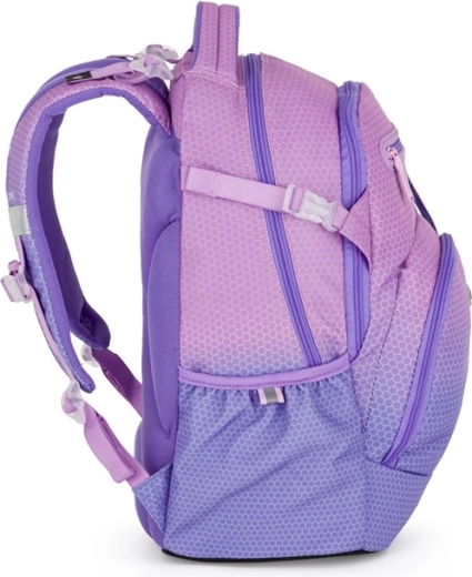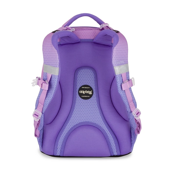 Le sac à dos scolaire OXY Ombre dans une finition rose‑violet est idéal pour les élèves à partir de la 3e classe. Il offre un panneau dorsal anatomique, des bretelles rembourrées et une sangle de poitrine réglable pour un port confortable. Grâce à son fond rigide, il tient debout de manière stable, dispose de deux compartiments spacieux, de poches latérales pour bouteille, d’une poche frontale pour le goûter et d’éléments réfléchissants pour une sécurité accrue.