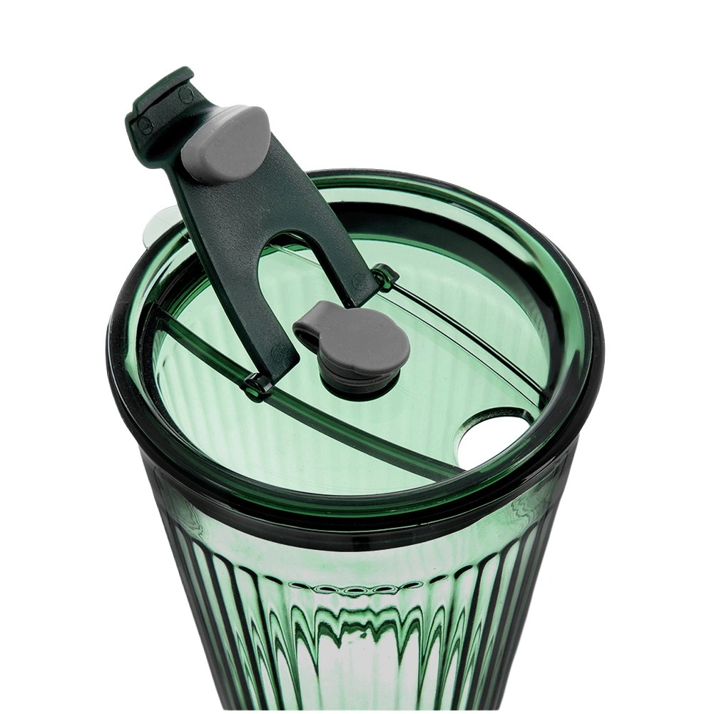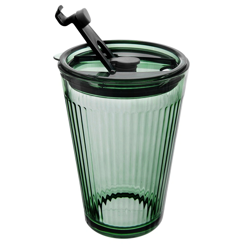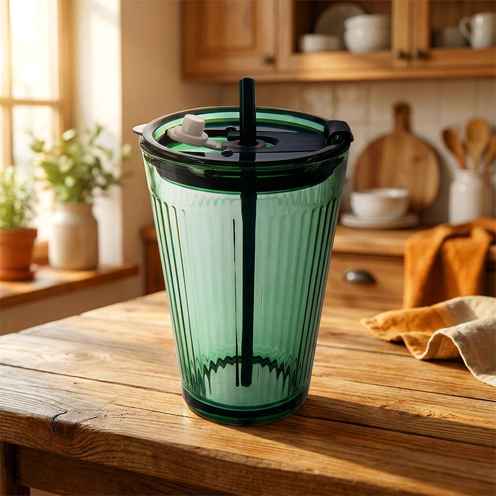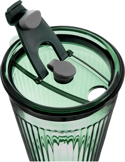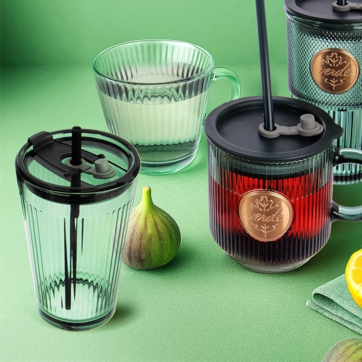 • Matériaux et finition : verre vert texturé de qualité, couvercle en plastique résistant vert foncé, paille en silicone souple.